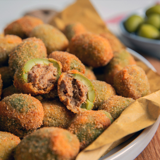13. Stuff the olives with the filling and close them to recreate their original shape.